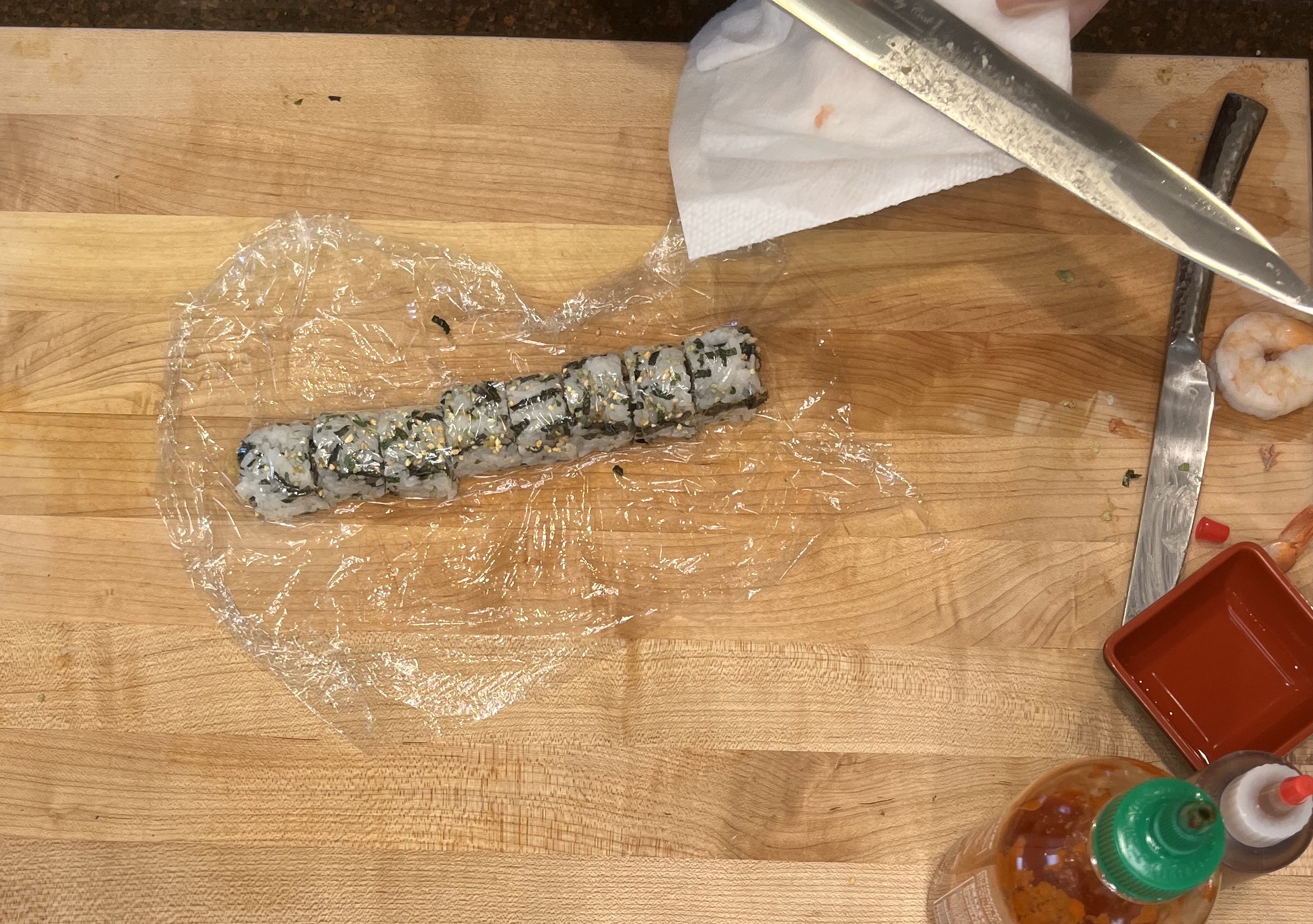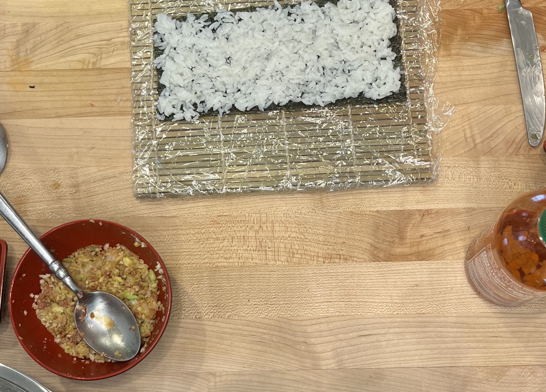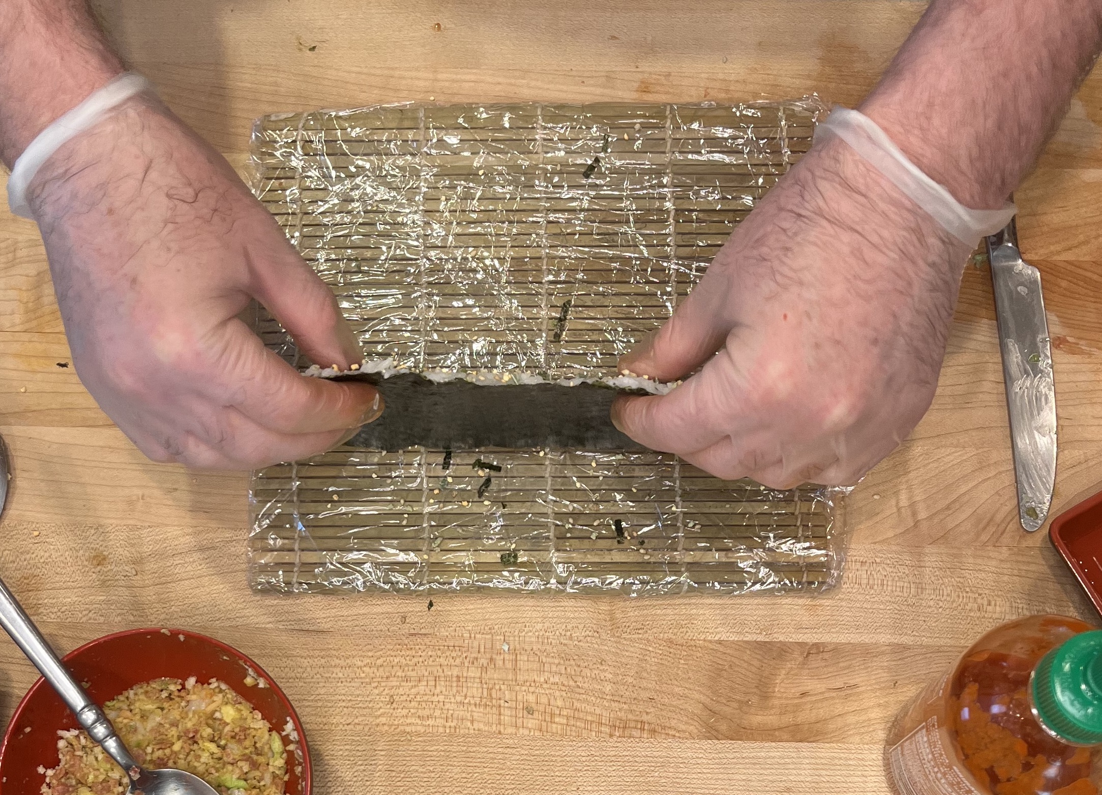 Add sushinoko seasoning to this roll for robust flavor. Be generous when adding the sushinoko seasoning.