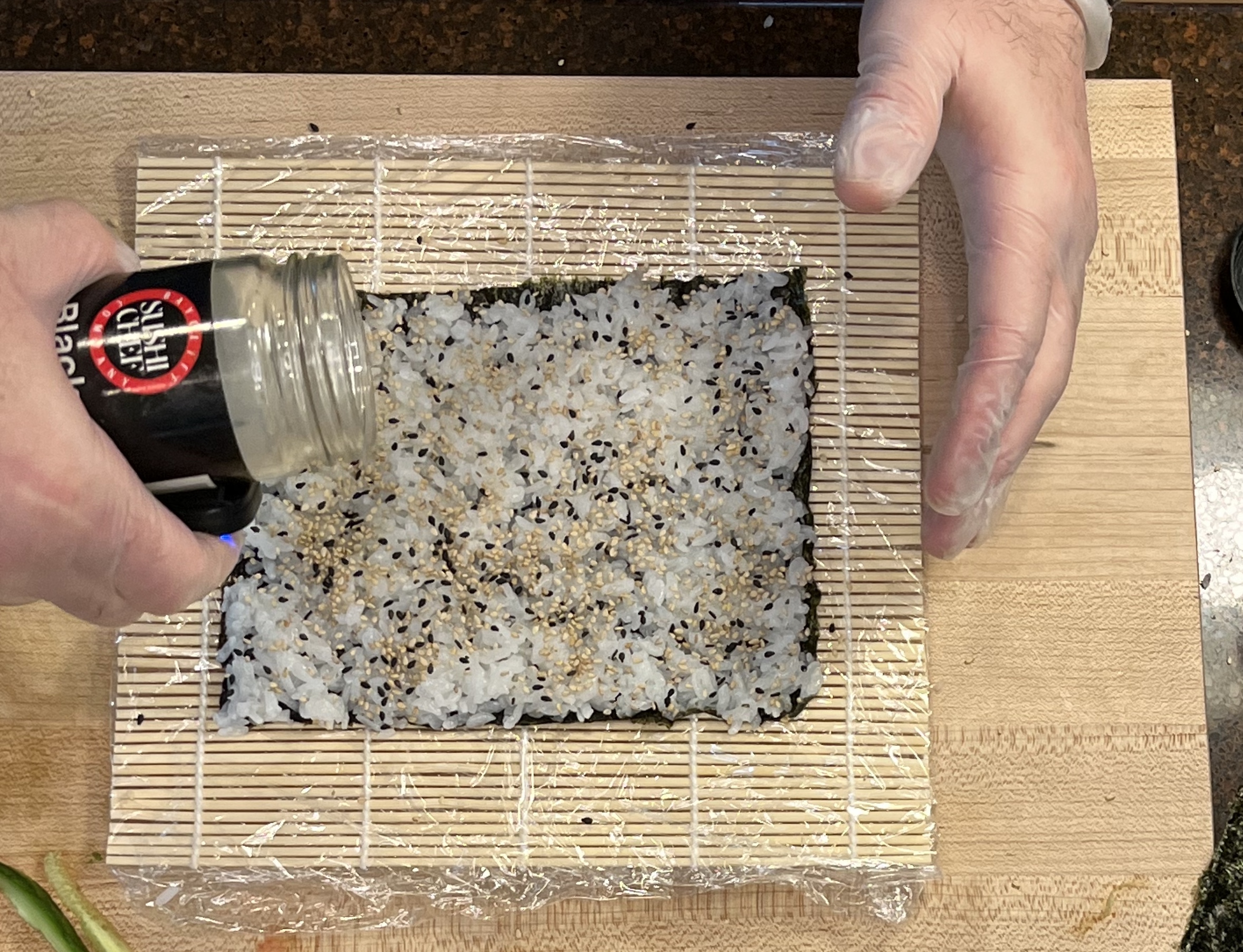 Flip the nori over to make an inside-out roll.