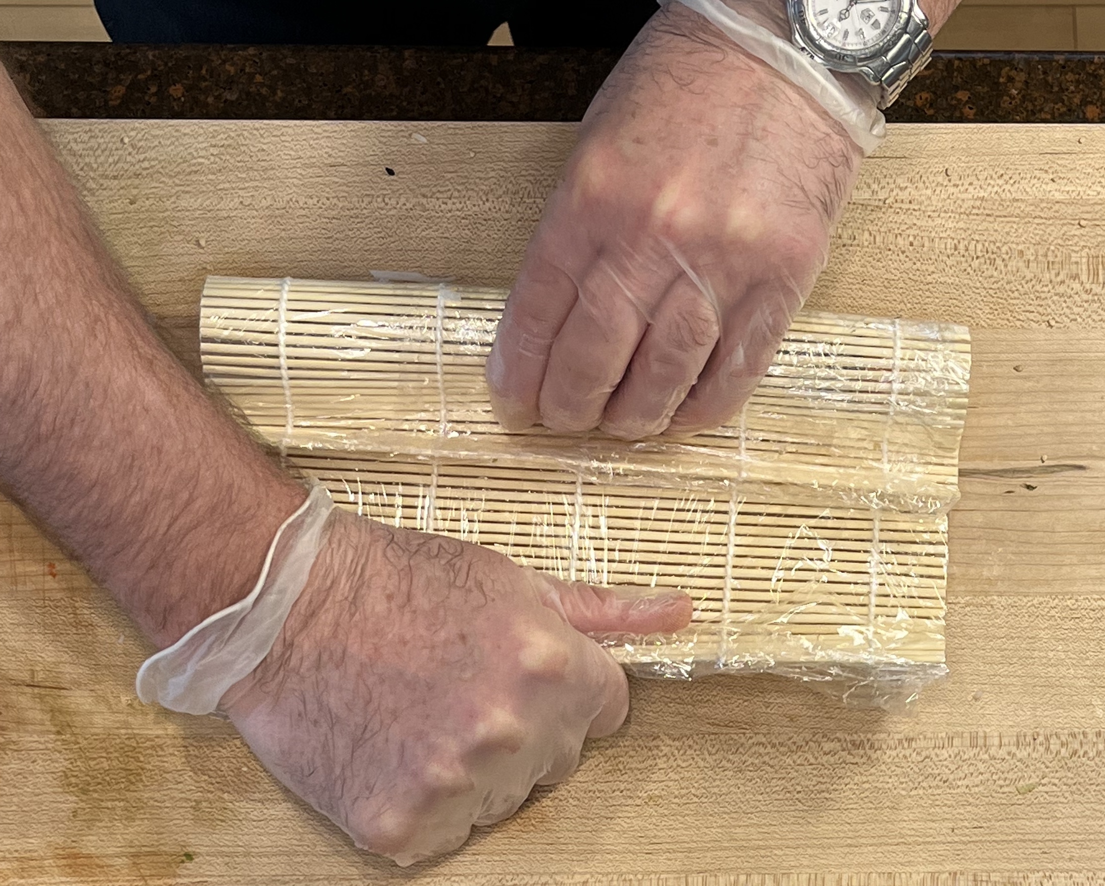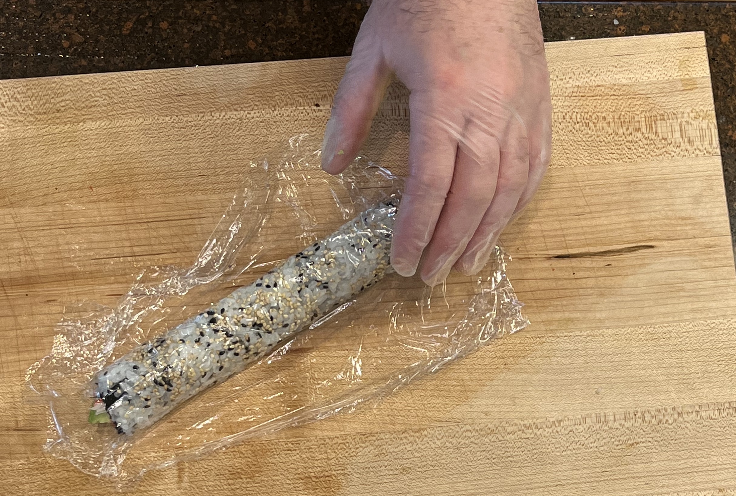 For beginners we recommend placing plastic wrap around the roll to help keep it in place.