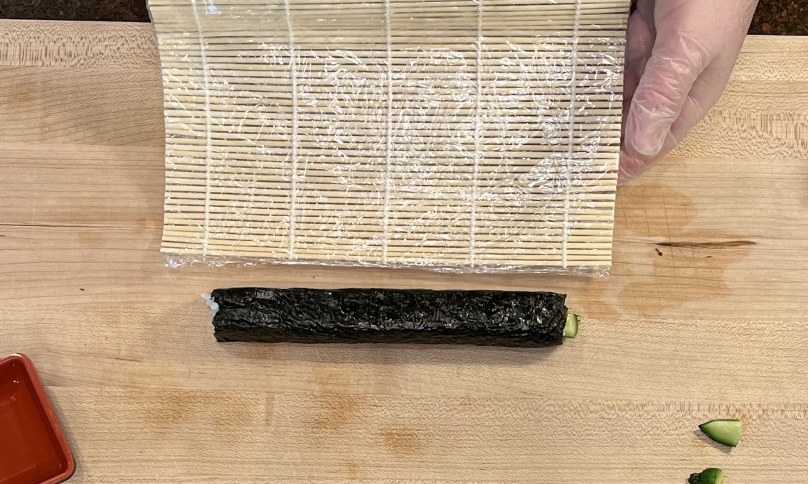 You now have a completed hosomaki roll, ready to cut in pieces.