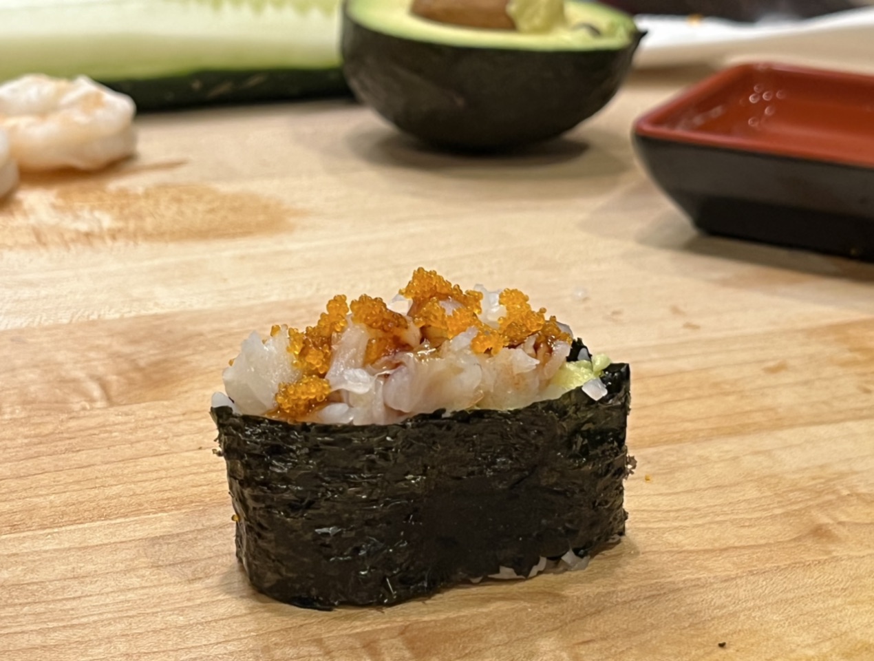 For this example we are making a shrimp and avocado roll.