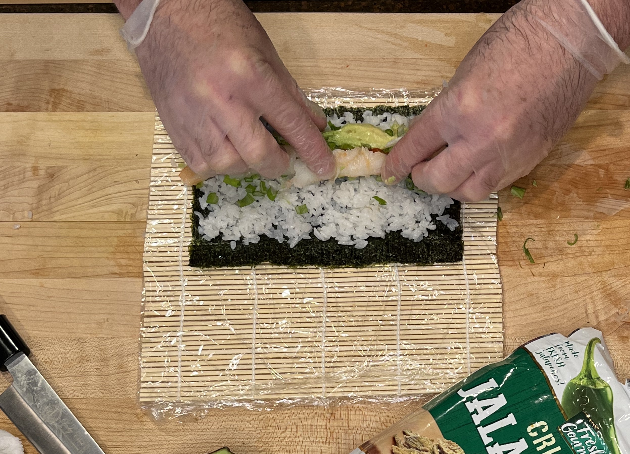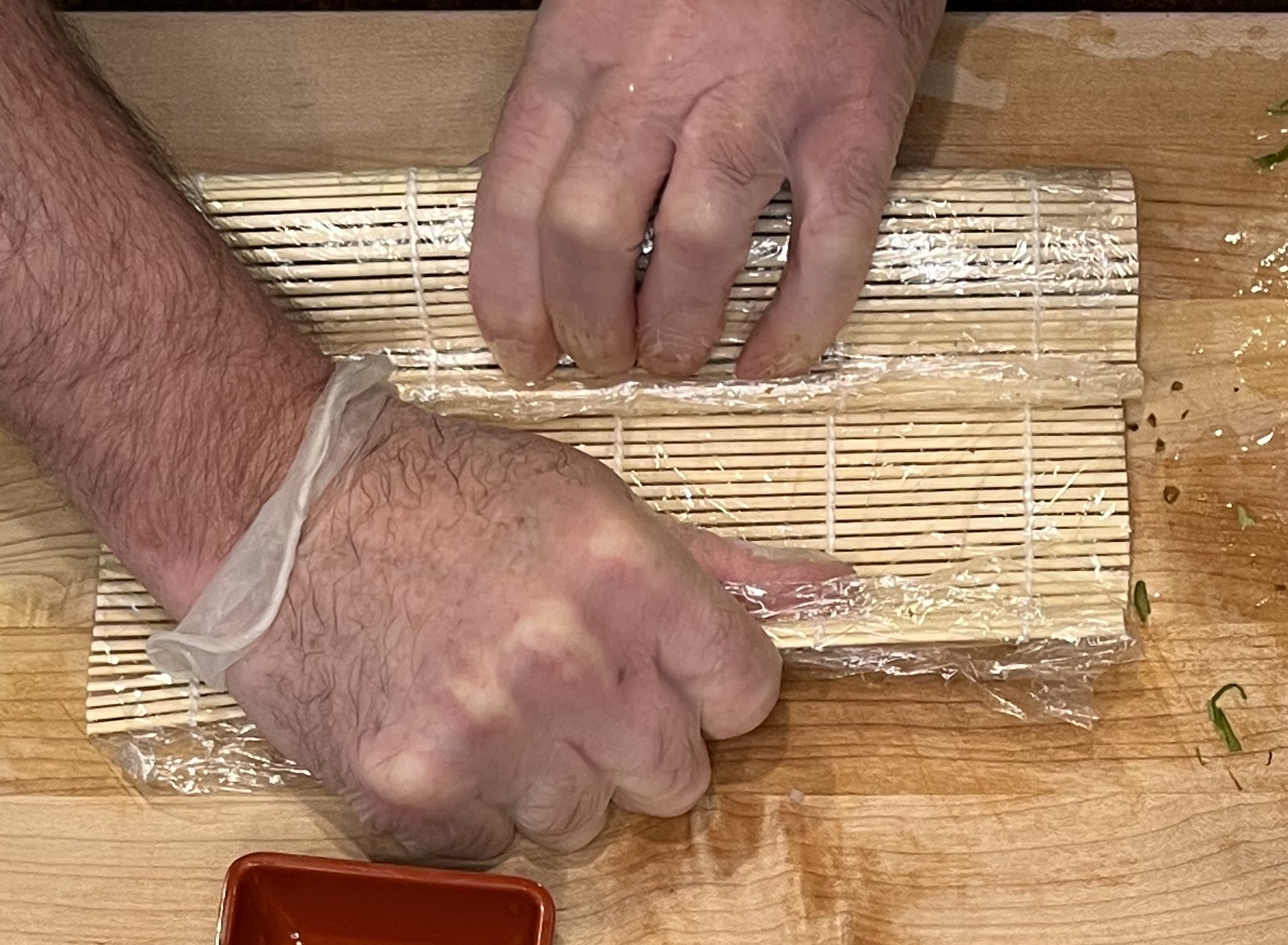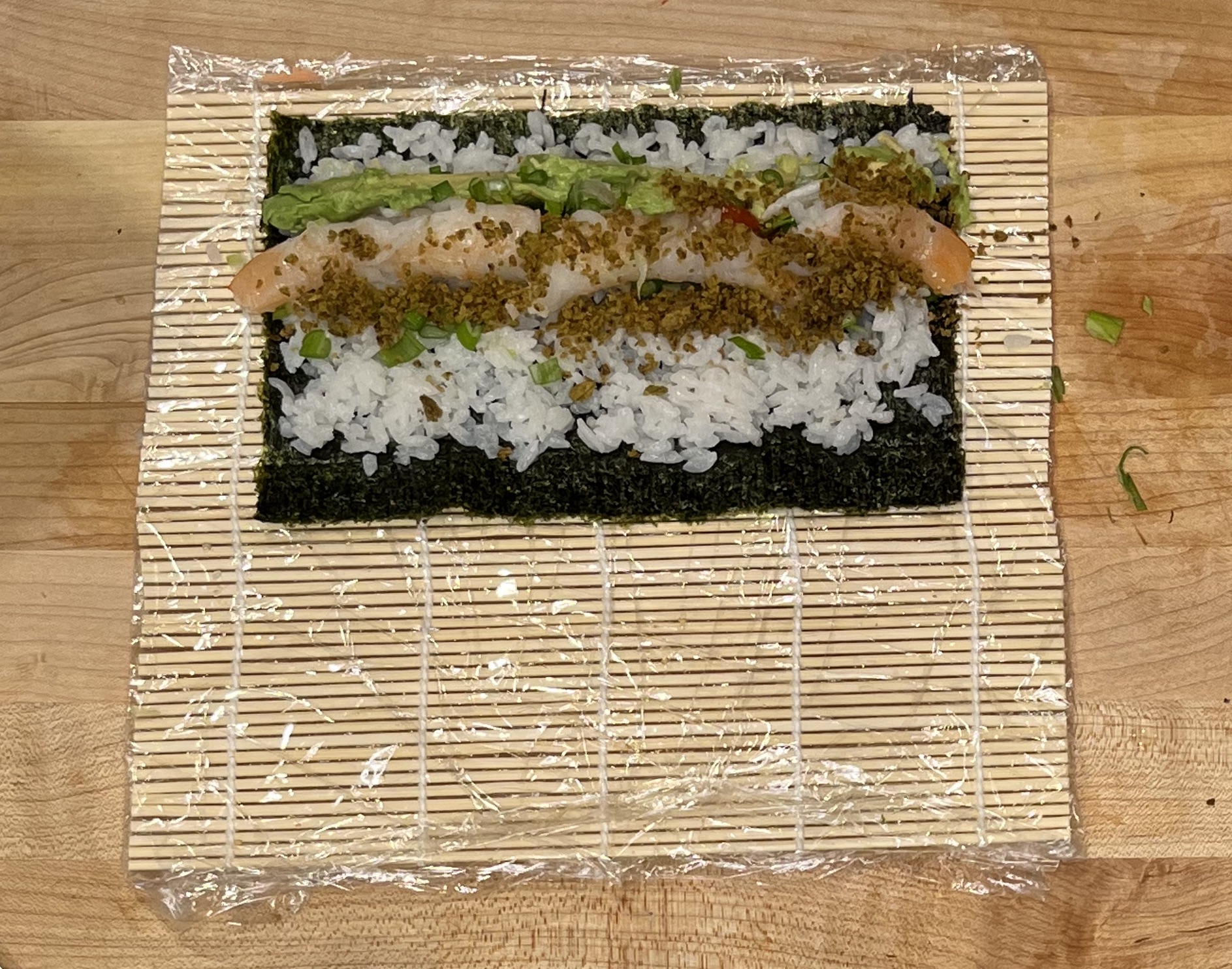 Form the roll. This is a great roll to tempura-fry (covered later).